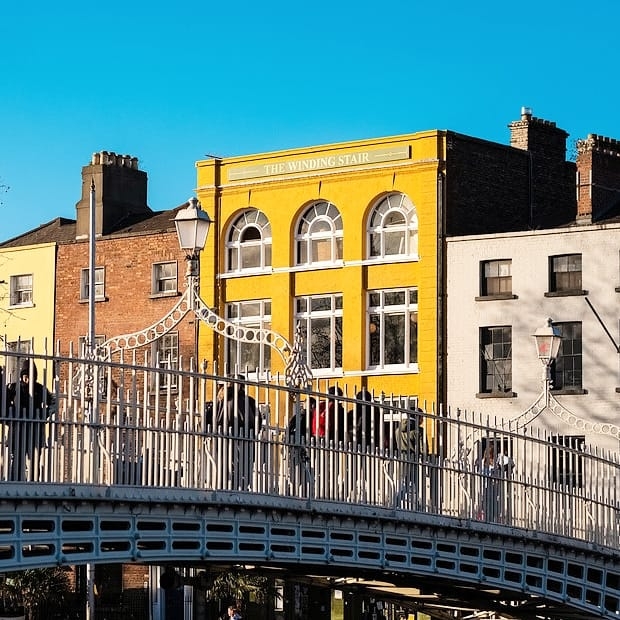 Winding Stair Bookshop & Cafe is a famous Dublin landmark, named after the Yeats poem, it is perfectly located, overlooking the river Liffey, with an iconic view of the Ha’penny bridge. Popular meeting place for writers, musicians and artists.